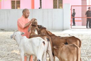 गोरखनाथ मंदिर का मुख़्यमंत्री योगी ने किया भ्रमण,मठ में गाय क़ो खिलाया गुड़…